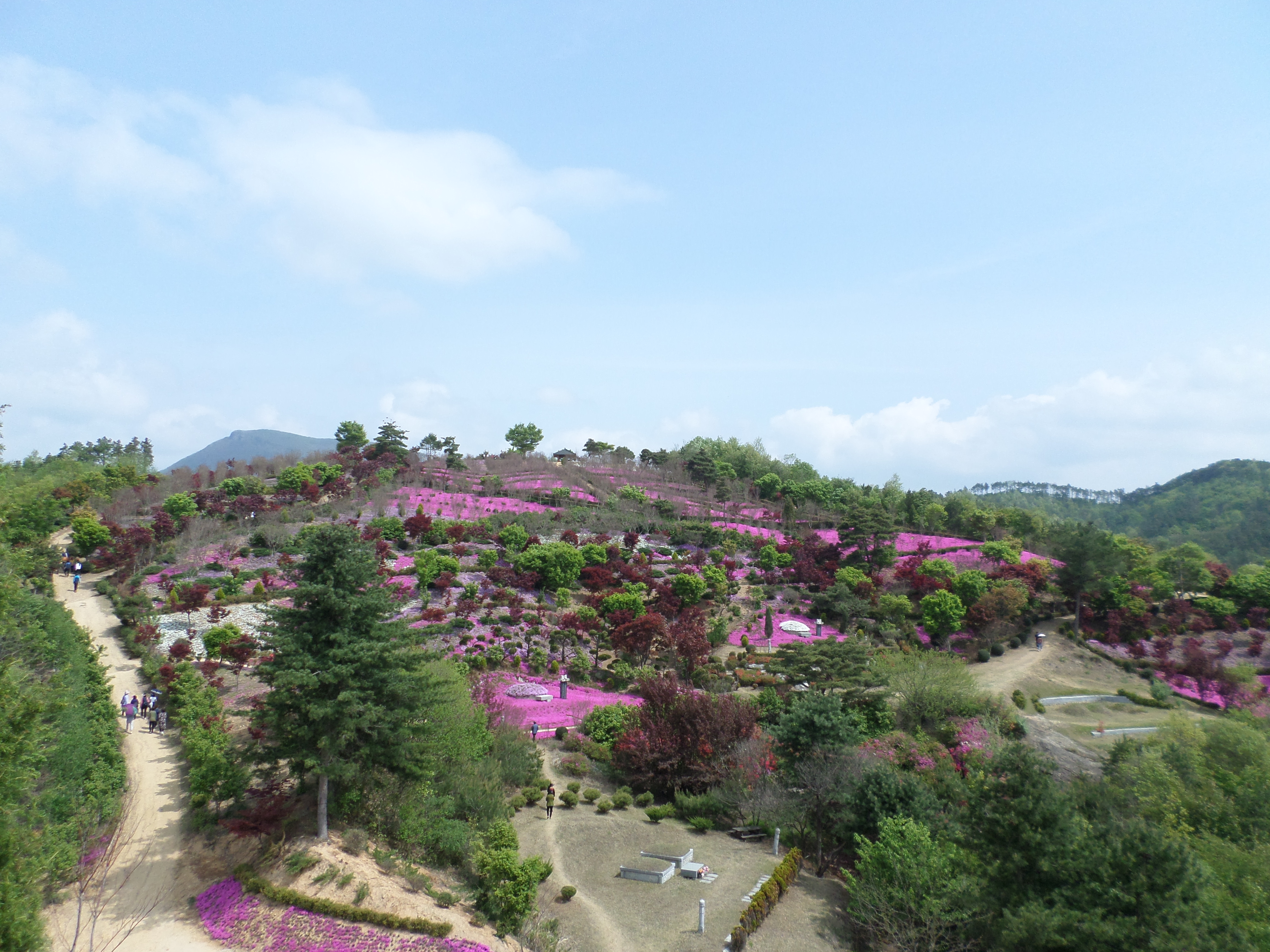4월부터 5월 초까지 약 5만 여평에 이르는 동산에 마치 분홍빛 양탄자가 깔린 듯한 꽃잔디를 볼 수 있으며, 5월 중순부터는 하얀 불두화의 아름다움을, 여름에는 배롱나무의 꽃, 가을에는 홍단풍나무의 알록달록한 단풍을 볼 수 있습니다.