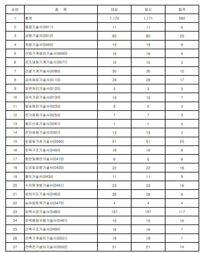 | 종 목 | 대상자 | 응시자 | 합격자 | 합격률(%) |
