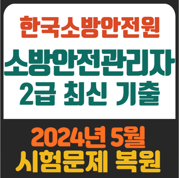 2024년 5월 3일 직접 소방안전관리자2급 시험에 응시하고 복원한 문제로 실제 지문과는 약간의 차이가 있을수 있으니 참고하세요!